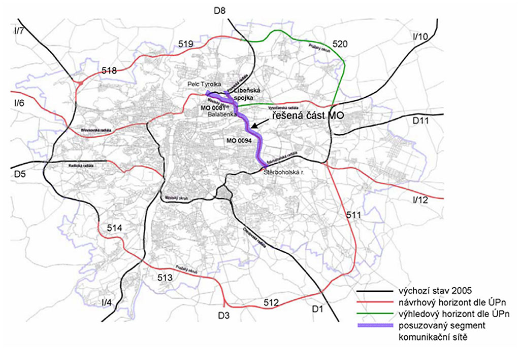 Podkladem pro dopravně inženýrský rozbor stavu automobilové dopravy ve výhledovém horizontu ÚPn (po roce 2015) byla práce: 09-7500-H09 II (aktualizace) – Dopravněinženýrské údaje pro dokumentaci EIA souboru staveb Městského okruhu v úseku Pelc-Tyrolka – Štěrboholská radiála (č. 0081 a 0094) a Libeňské spojky (č. 8313) – doplnění DIP pro Městský okruh a Libeňskou spojku, úkol č. ÚDI č. 07-130-H42