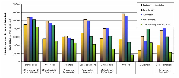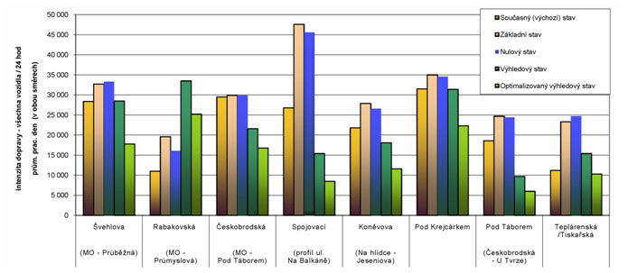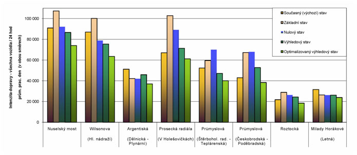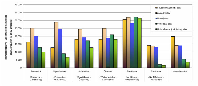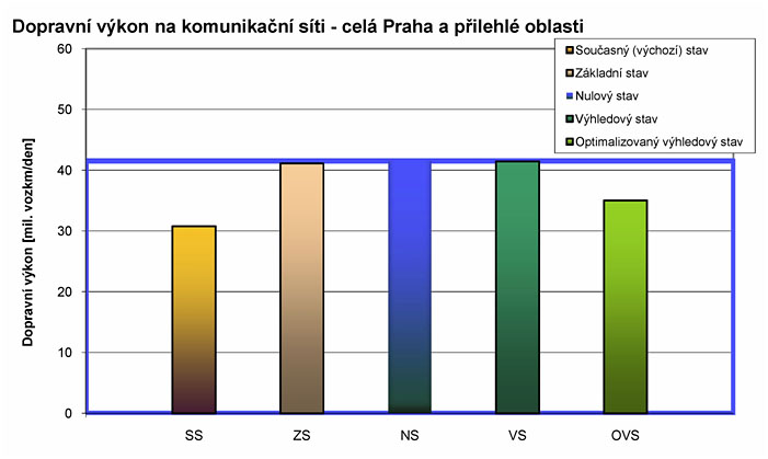 Jednoznačně nejhorší dopravní situace nastává v základním stavu, kdy je spotřeba času uživatelů na celé komunikační síti celé Prahy o více než 45 % vyšší než v současnosti a více než dvojnásobná oproti výhledovému optimalizovanému stavu.
