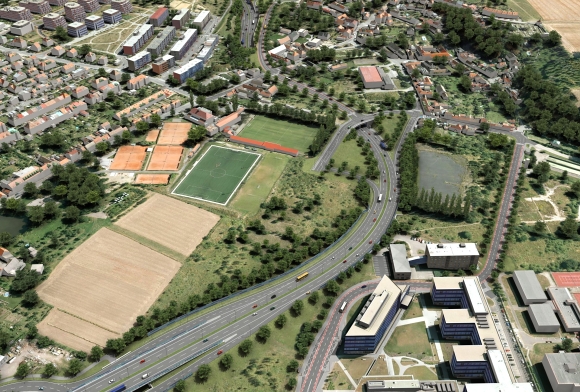 Celkový pohled na část Radlické radiály mezi MÚK Řeporyjská a tunelem Butovice (© 2012 PUDIS & SATRA & ARTOO)