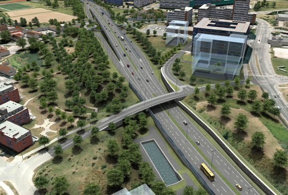Pohled na část Radlické radiály u křížení s ulicí Schwarzenberská (© 2012 PUDIS & SATRA & ARTOO)