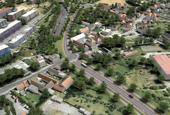 Pohled na křižovatku ulic „Nová Radlická“ a Butovická nad tunelem Butovice (© 2012 PUDIS & SATRA & ARTOO)