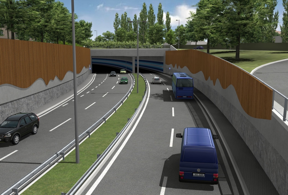Pohled na západní portál tunelu Butovice a prostor MÚK Butovice (© 2012 PUDIS & SATRA & ARTOO)