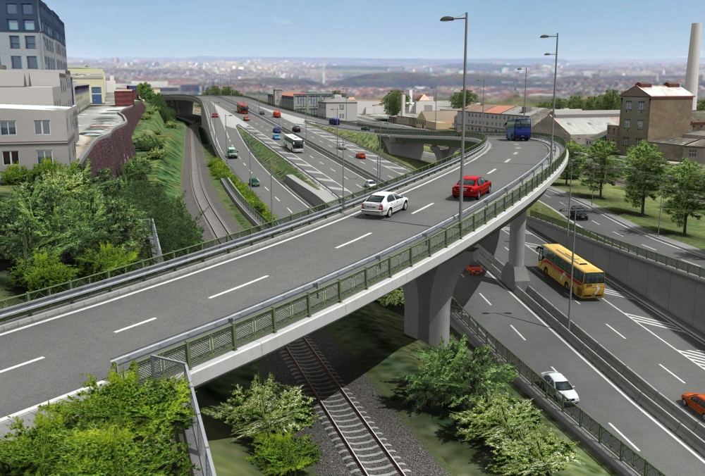 Pohled na most rampy I v MÚK Zlíchov od ulice Křížová (© 2012 PUDIS & SATRA & ARTOO)