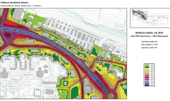 Úsek Bucharova – Řeporyjská, Celková akustická situace, den (© 2001-2012 sdružení PUDIS – SATRA)