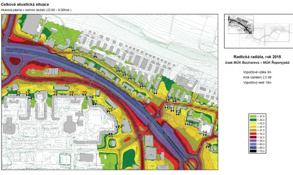 Úsek Bucharova – Řeporyjská, Celková akustická situace, noc (© 2001-2012 sdružení PUDIS – SATRA)