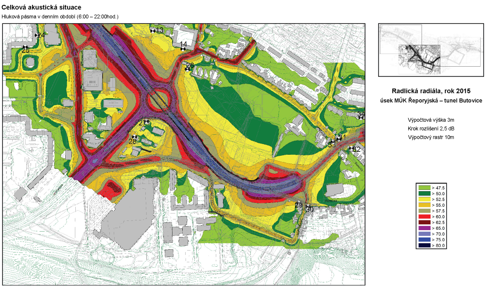 Úsek Řeporyjská – tunel Butovice, Celková akustická situace, den (© 2001-2012 sdružení PUDIS – SATRA)