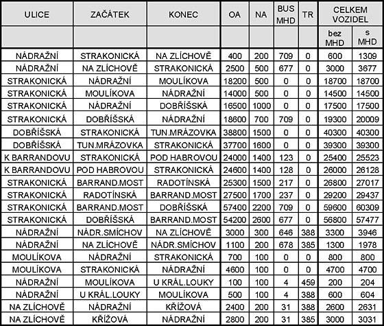 Intenzity automobilové dopravy na sledované síti, rok 2010, pracovní den, 0-24 h ()