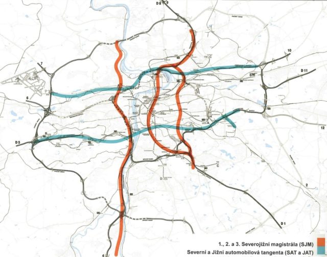 Průmět roštového dopravního systému (60. léta) do platného územního plánu komunikační sítě hl. m. Prahy