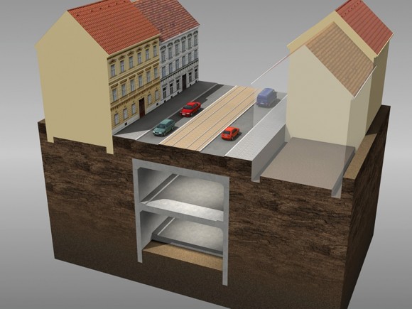 6. fáze výstavby – odtěžování a realizace druhé úrovně tunelu (© 2010 SATRA & ARTOO)
