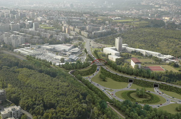 MÚK Českobrodská ve variantě T1 a T2, portály vjezdových a výjezdových ramp z tunelu (© 2010 autoři projektu)