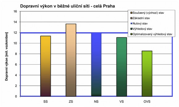 Dopravní výkon v běžné uliční síti Prahy v jednotlivých stavech NKS. © 2010 – autoři projektu.