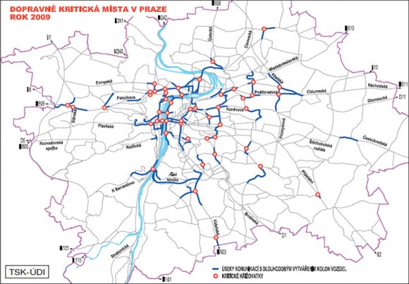Dopravně kritická místa v Praze v roce 2009 (© 2010 – autoři projektu)