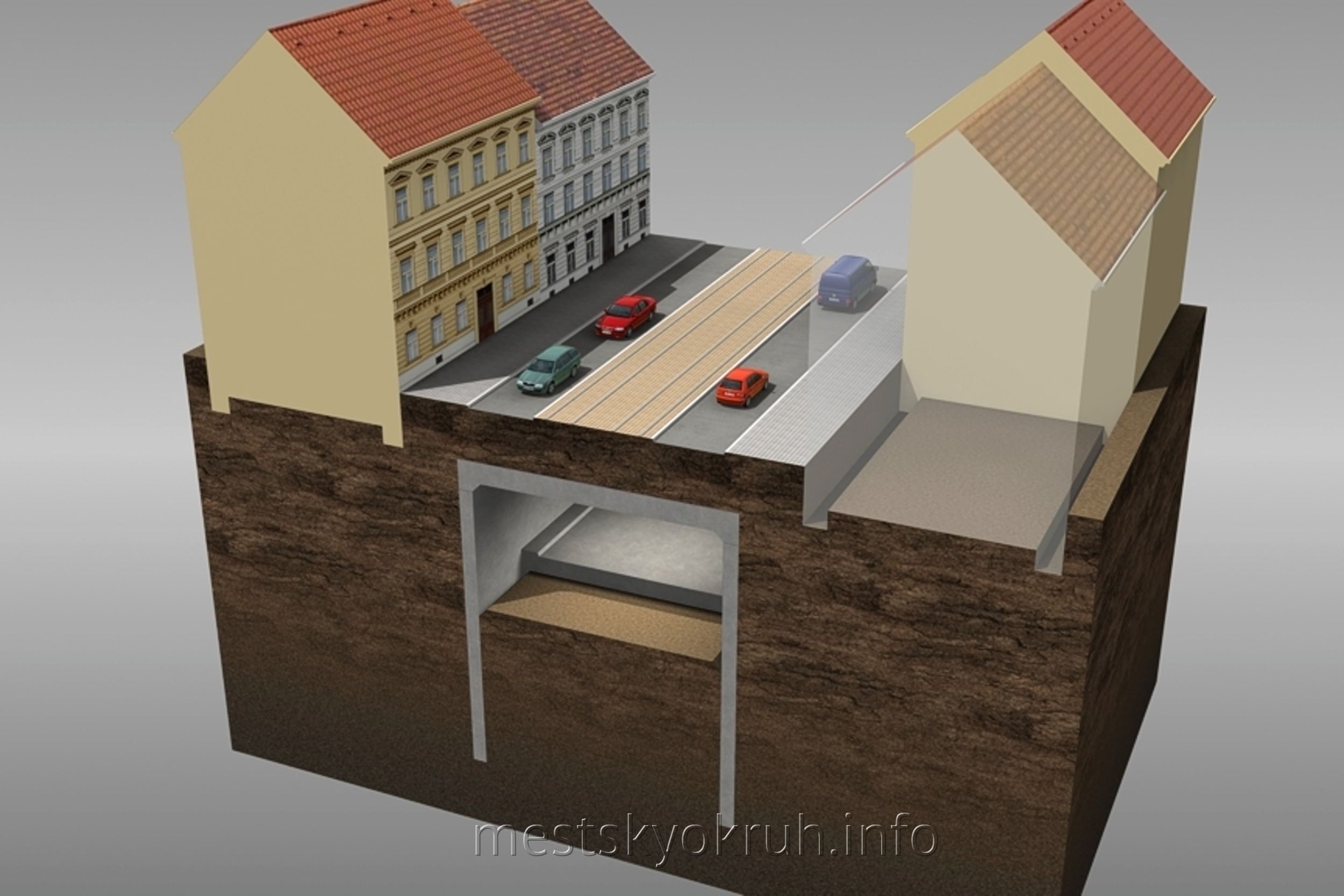 5. fáze výstavby – odtěžování a realizace první úrovně tunelu