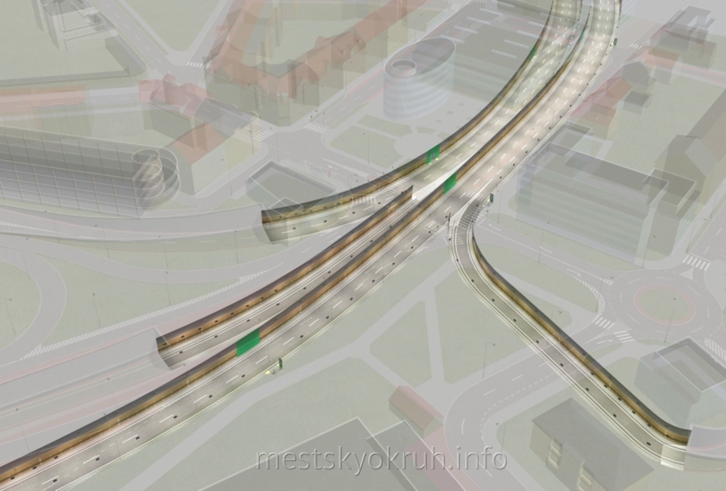 Axonometrie tunelů v prostoru náměstí Na Stráži a MÚK Vychovatelna