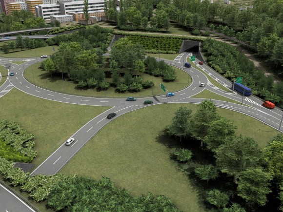 Stavba 0094 varianta ražená – portály tunelových ramp v MÚK Českobrodská (© 2010 SATRA & ARTOO)