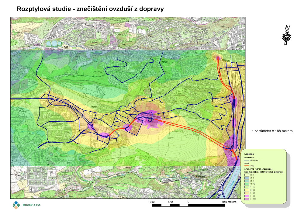 Rozptylová studie (© 2001-2012 Bucek s.r.o. pro sdružení PUDIS – SATRA)