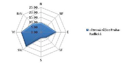 Větrná růžice Praha Radlická (© 2012 sdružení PUDIS – SATRA)