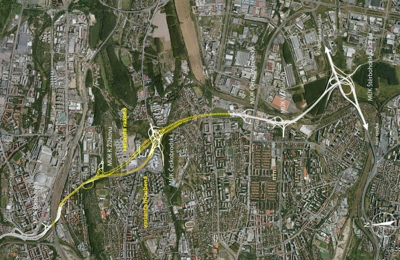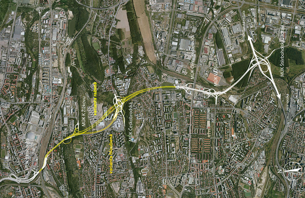 Situace stavby 0094 Balabenka – Å tÄrboholská radiála v ortofotomapÄ (© 2010 autoÅi projektu)