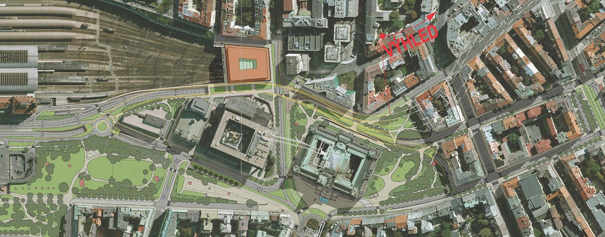 Situace zklidnění Severojižní magistrály v oblasti Národního muzea (© 2008 SATRA a VHE )
