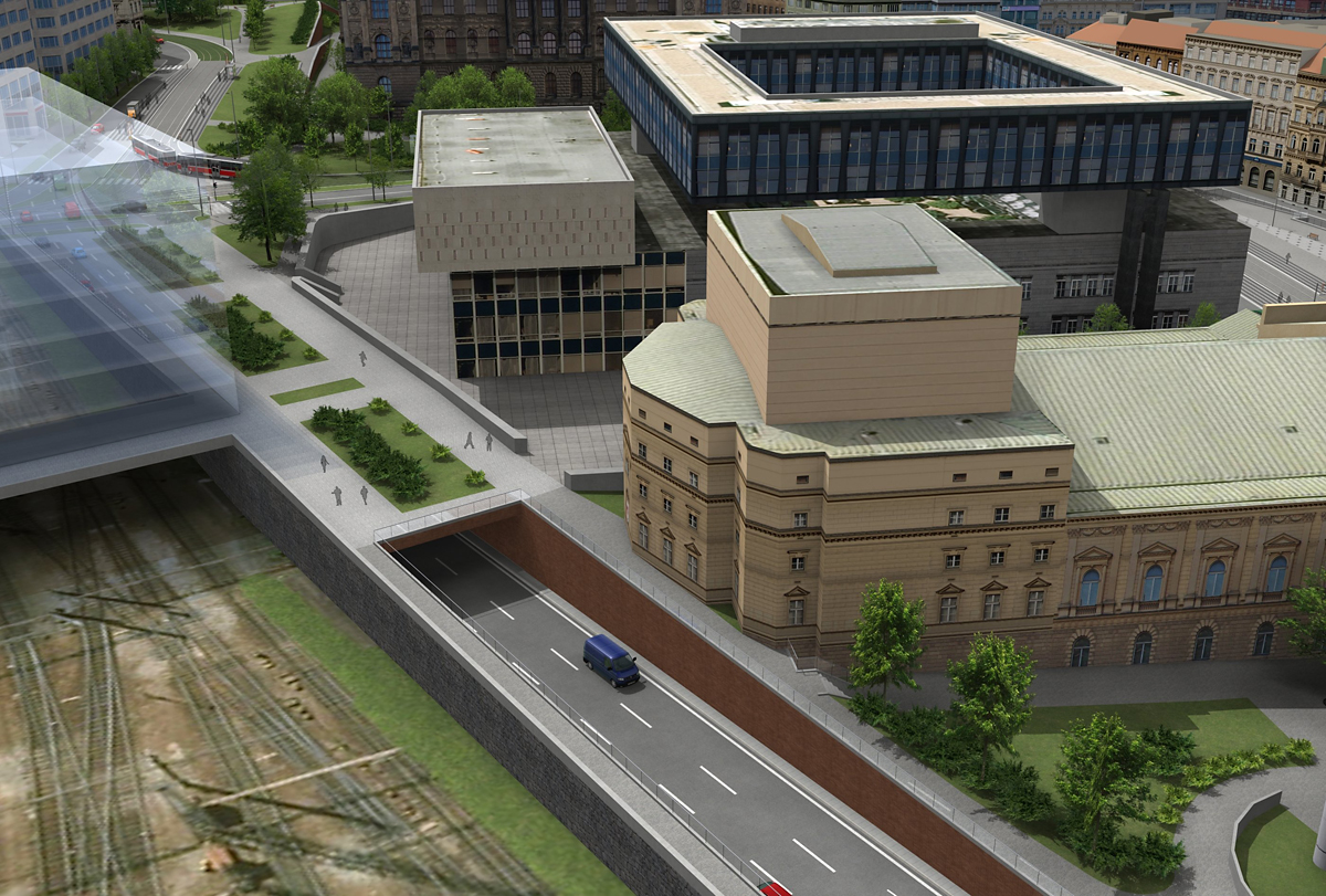 Vizualizace – pohled na oblast za budovou Státní opery (© 2008 SATRA & ARTOO)
