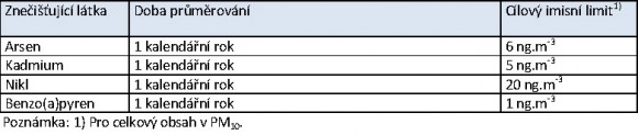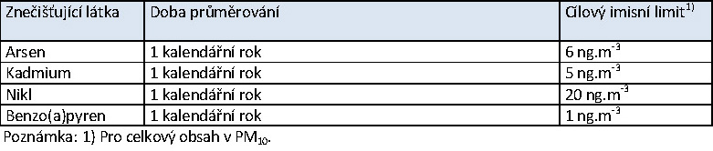 Cílové imisní limity vybraných znečišťujících látek vyhlášené pro ochranu zdraví lidí (© 2012 sdružení PUDIS – SATRA)