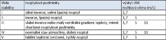 Charakteristika tříd stability a výskyt tříd rychlosti větru (© 2012 sdružení PUDIS – SATRA)