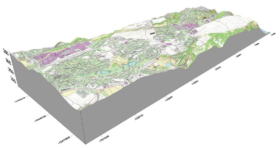 Vizualizace terénu v okolí záměru ve 3D (© 2012 sdružení PUDIS – SATRA)
